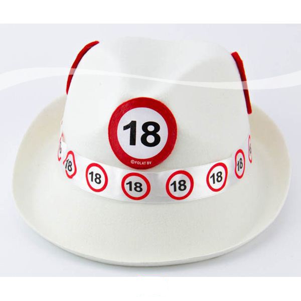 Fehér kalap, 18-as sebességkorlátozó felirattal.
