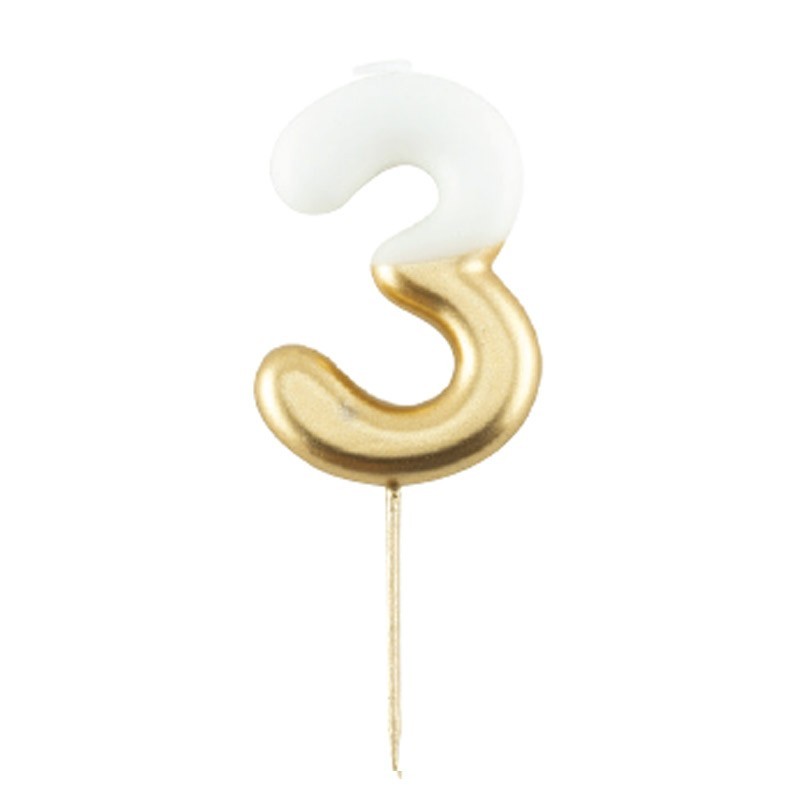 Szülinapi Gyertya - 3-as Fehér Arany Színű