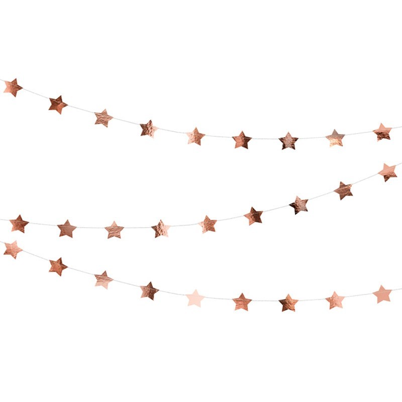 Rosegold Csillagos Dekorációs Parti Füzér - 360 cm