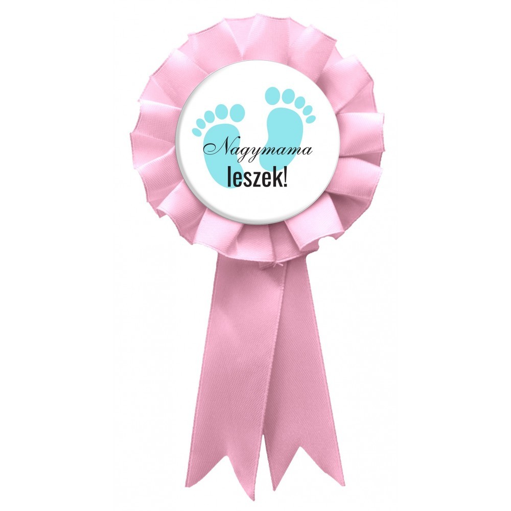 Kitűző - Nagymama Leszek Babaváró Szalagos - KISFIÚ - Pasztell Pink Szalaggal