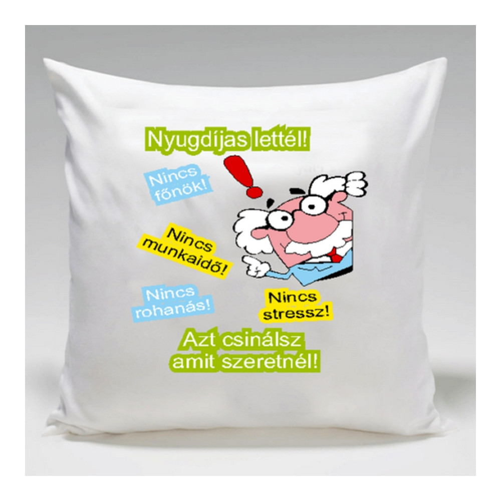 Nyugdíjba menet alkalmára vicces feliratozású párna.
