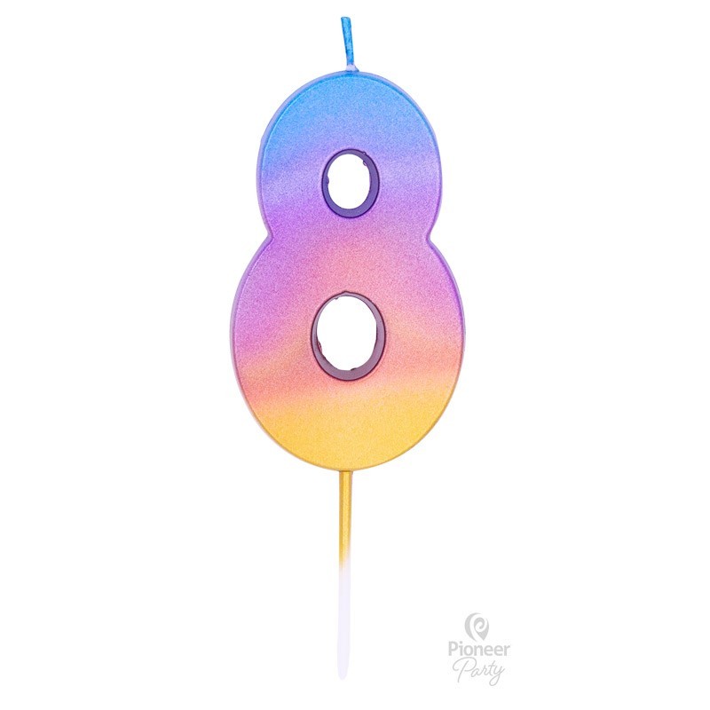 Szivárvány színű 8-as számgyertya.