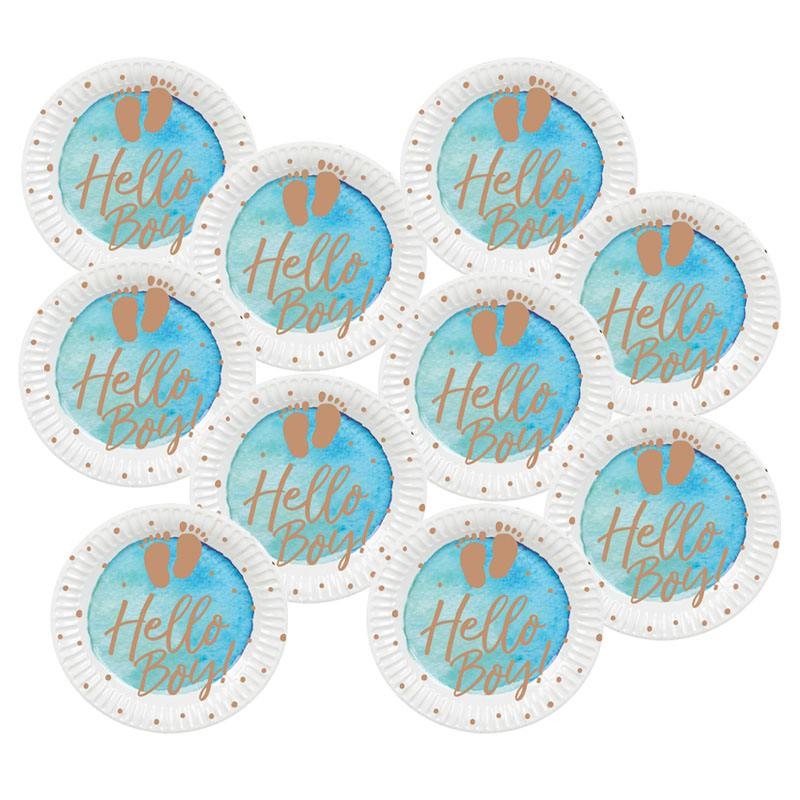 Parti tányér - Hello Boy Papír - Babaszületésre - 23 cm, 10 db-os