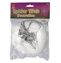 Fehér színű puha vattaszerű háló, 1 db 4 cm-es fekete pókkal. Kül- és beltéri dekorációhoz egyaránt alkalmas.